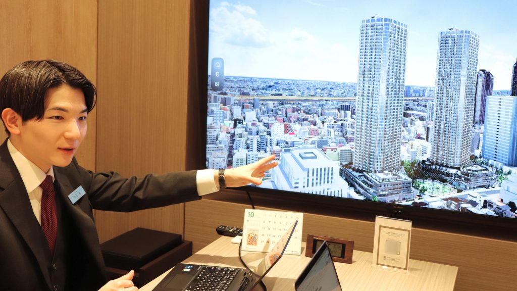板倉様:「こんなツールがあるんですね」と驚かれることが多かったです。従来、このような大規模タワーは、検討中の住戸位置や建物全体のスケール感は図面だけではイメージしづらいのですが、「ROOV.space」なら直感的にご理解いただけます。